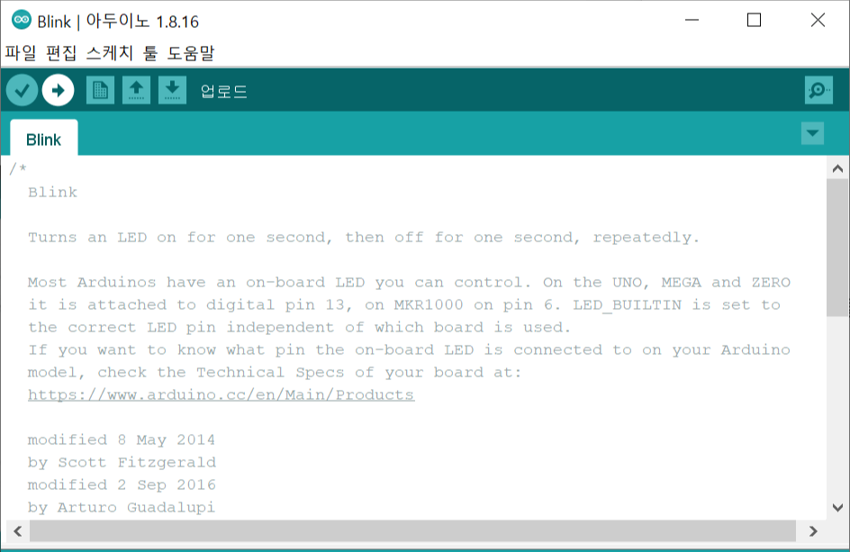 1. 'Blink' 스케치 예제 열기